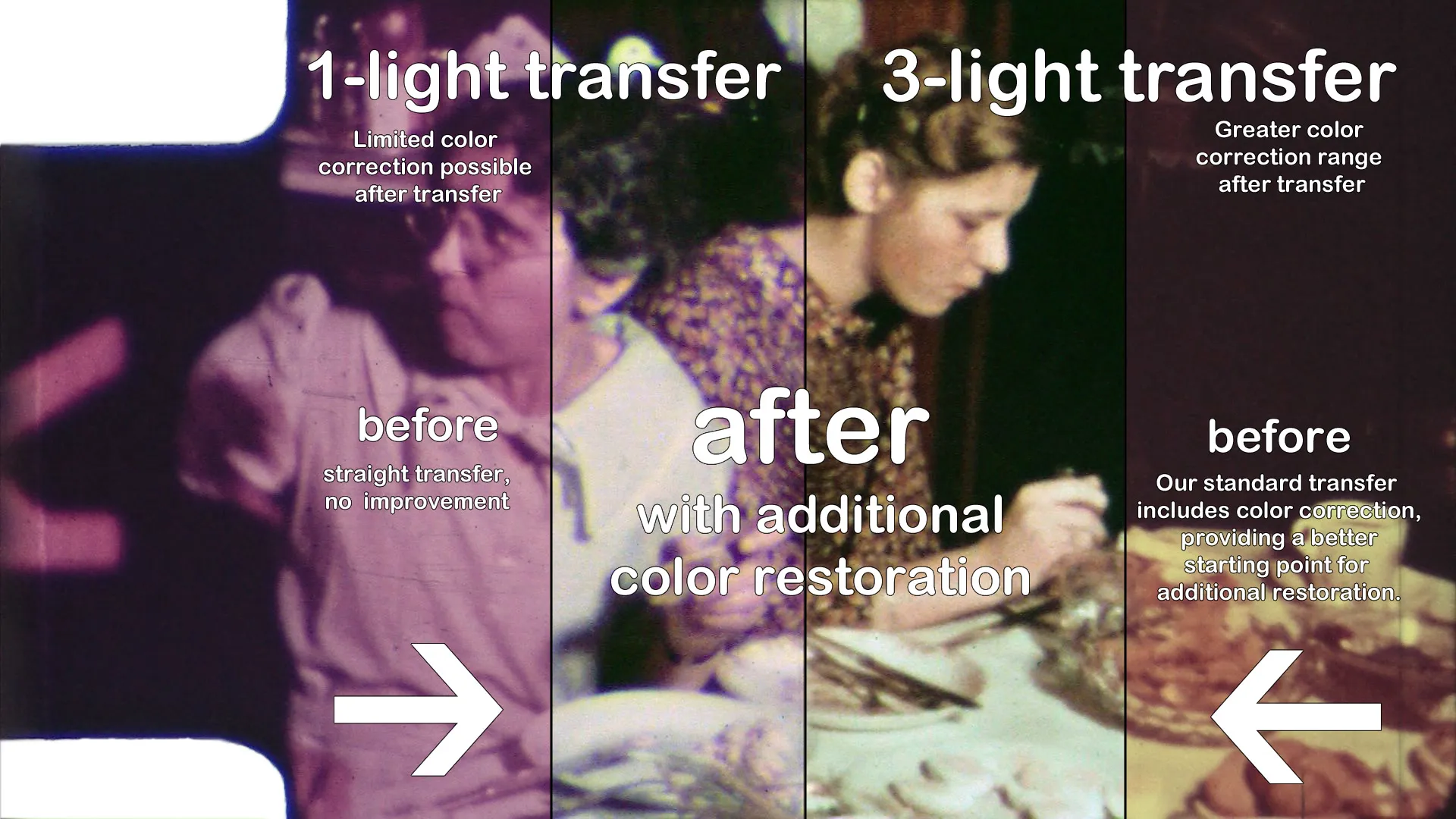 Professional transfer of 50ft film reel Have your family memories digitized by a professionally trained and educated photographer and filmmaker. We are a very small company and passionate about what we do. We care about your materials like you do! Let us show you how much.